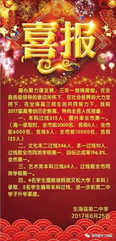 昨天高考成绩揭晓,接到东海二中发来的喜报: