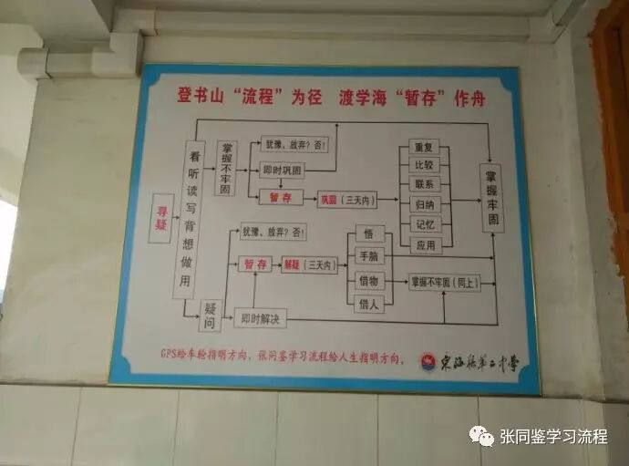 学校在所有教室和走廊都布置了“张同鉴学习流程图”